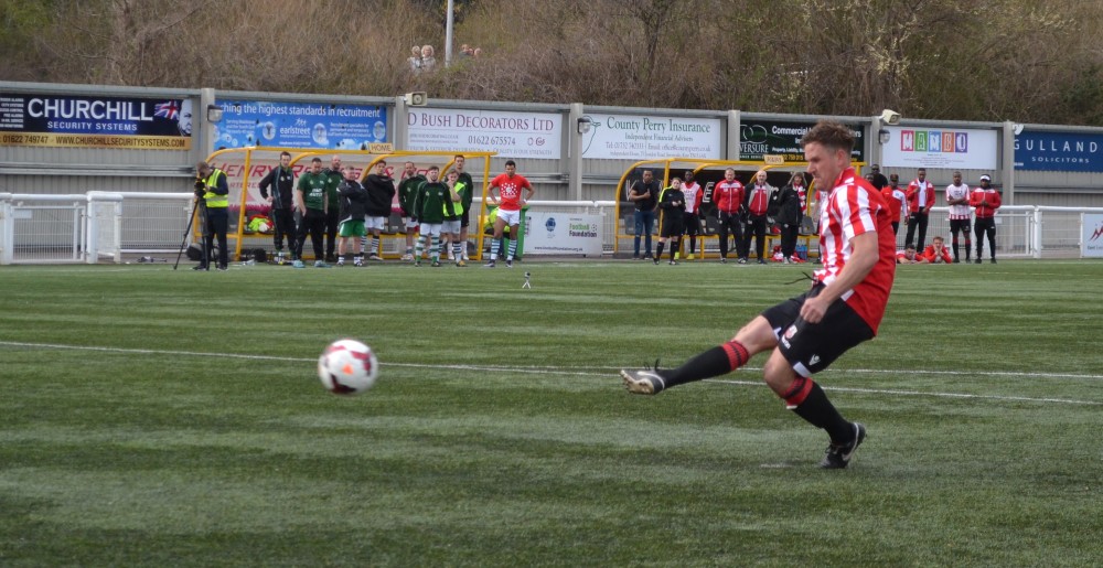 Huggins stepped up for Sheppey United and make it 4-3 by placing his right-footed shot into the right-hand corner.