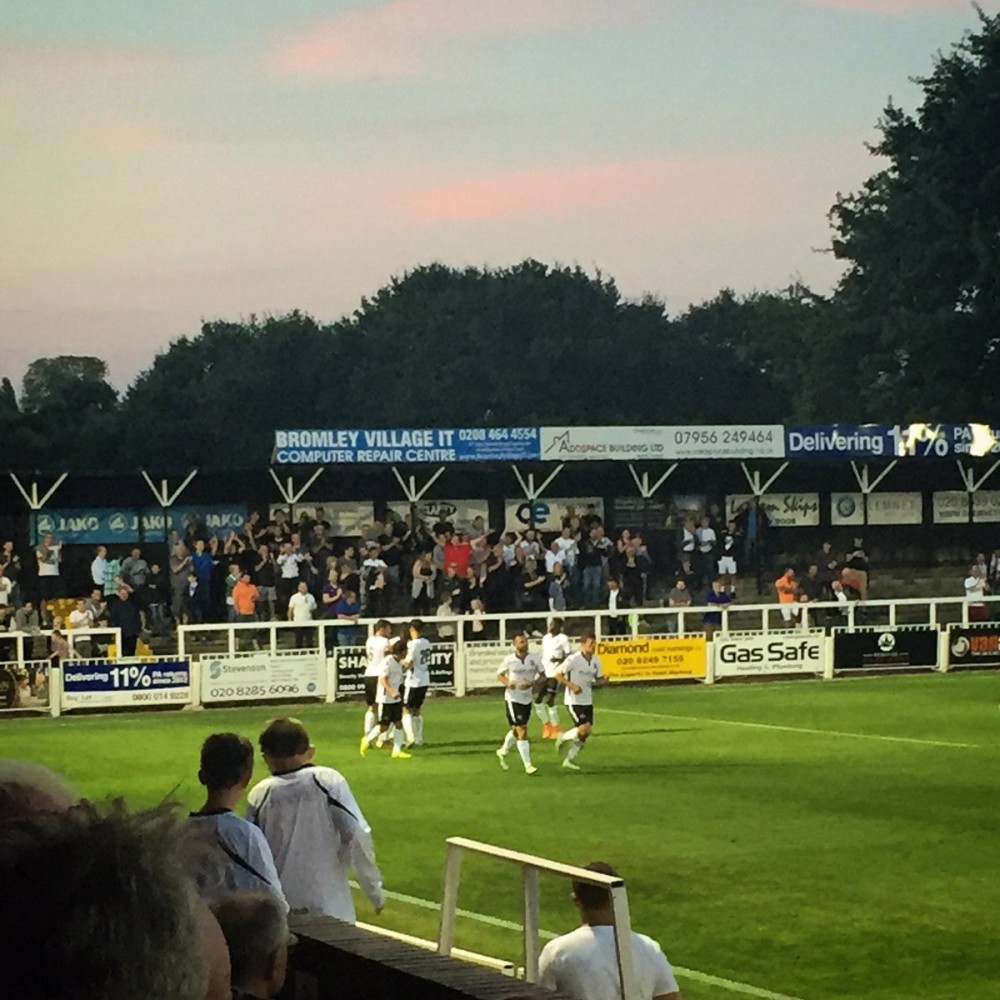With choruses of “Come on Bromley,” coming from the North Terrace, as Bromley kicked down the slope during the first half, Bromley took 35 minutes to create their first opening.