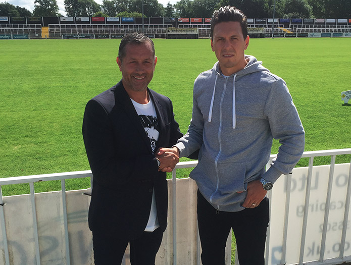 WELCOME: Bromley manager Neil Smith has made Joe Howe (right) his first summer signing.