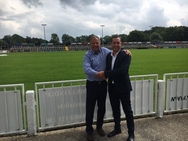 FRIENDS REUNITED: Steve Lovell (left) is welcomed to Bromley by manager Neil Smith. Lovell was a player, coach, community officer, under 18 coach, under 17 coach and manager during his 20-year love affair at Gillingham.