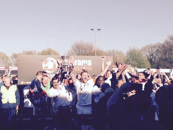 GREATEST DAY: Danny Waldren and Rob Swaine lift up the Vanarama Conference South trophy