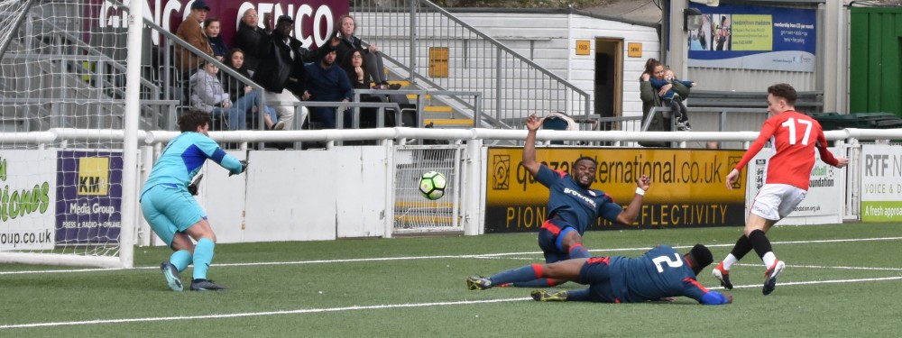 Seven minutes from the end of normal time, Beckenham Town felt their moment had come when Cox released Richard Atkins in behind Evans but he lost composure inside the box and lashed his right-footed shot over the top of the near post from 15-yards.