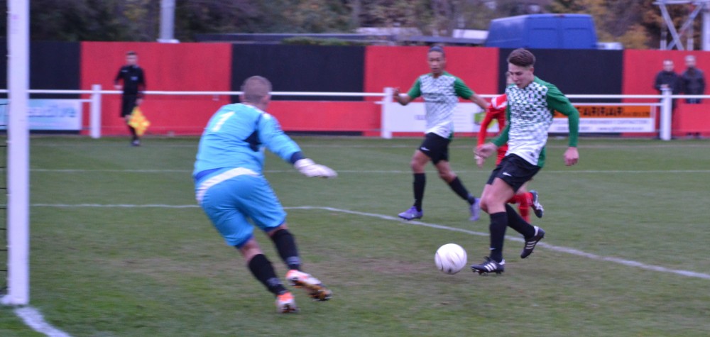 MATCH WINNER: Jamie Miller scores his first goal of the season to help Cray Valley reach the Kent Reliance Senior Trophy Quarter-Finals, winning an entertaining game against Tunbridge Wells.