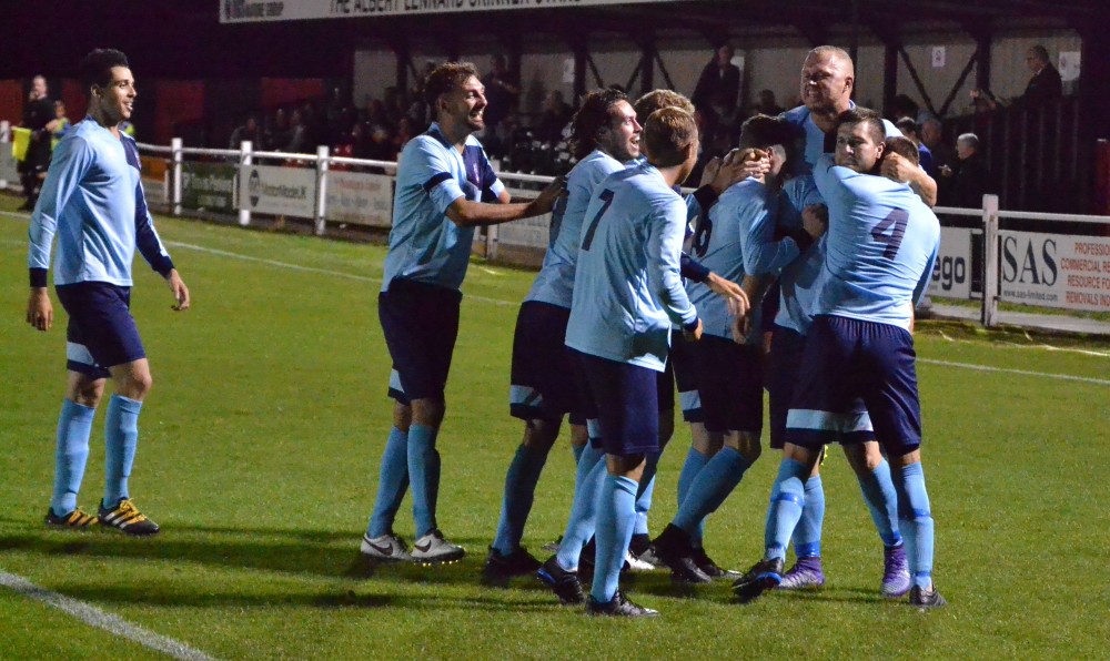 MATCH WINNER: Glebe celebrate Ryan Golding's winner at Cray Valley in The Buildbase FA Vase First Qualifying Round tonight.