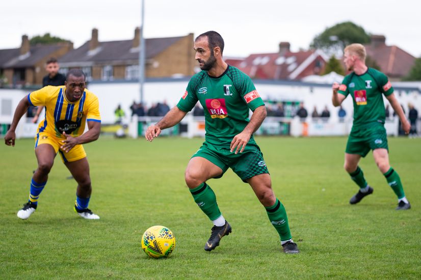 Kieron McCann (centre) helped Cray Valley reach The FA Cup First Round for the first time in their history this season when they lost 1-0 to Vanarama National League South side Havant & Waterlooville.
