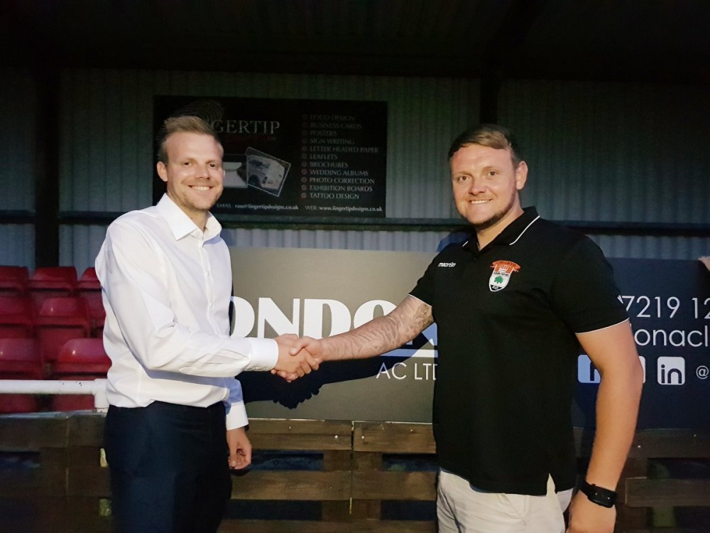 Lordswood manager Richard Styles (right) welcomes new chairman Terry Hussey to the club.